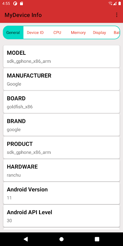 برنامه ساده برای دریافت اطلاعات دستگاه / سیستم عامل / شبکه / پردازنده / حافظه / باتری و موارد دیگر.