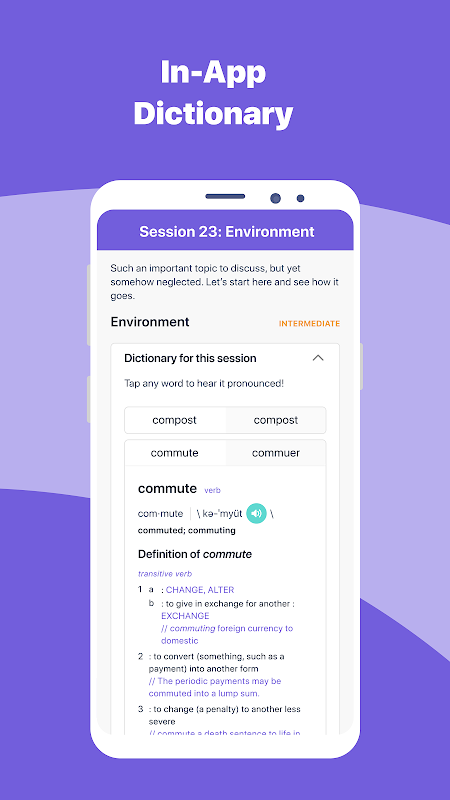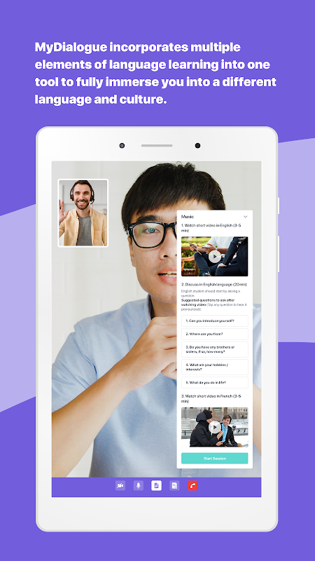 آیا می خواهید خود را در زبان انگلیسی غرق کنید و مسلط شوید؟ MyDialogue را دانلود کنید تا به زبان مجازی بپردازید. دوره انگلیسی MyDialogue شامل جلساتی است که موضوعات و سطوح مختلف را پوشش می دهد. هر جلسه شامل تمام جنبه های یادگیری زبان، از یادگیری واژگان و خواندن تا صحبت با شریک مکالمه خود و یک کار نوشتن است (تصاویر را ببینید). هدف این است که با گذراندن چند جلسه مختلف، دائماً در معرض واژگان جدید قرار بگیرید و به مرور زمان مسلط شوید. ما می دانیم که یادگیری زبان می تواند یک کار طاقت فرسا باشد، و MyDialogue این را با امکان یادگیری زبان از طریق مکالمات جالب تغییر می دهد!