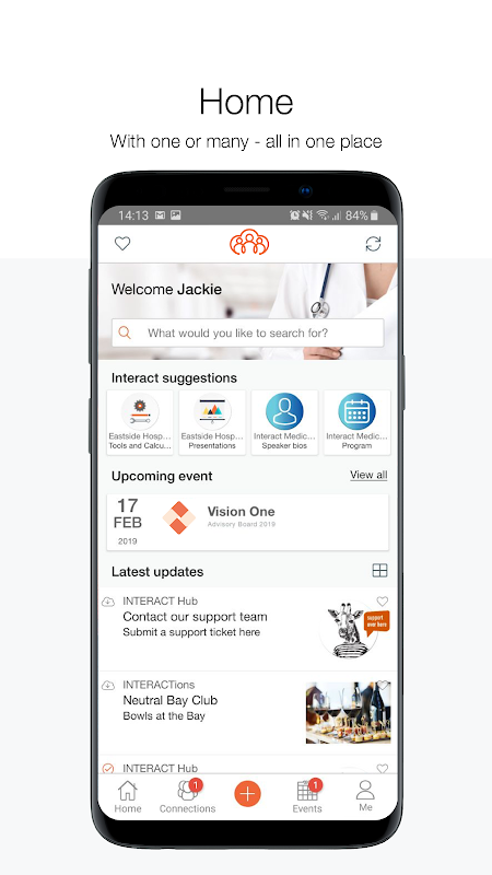 این پلت فرم یک ارتباط شخصی جذاب بین متخصصان مراقبت های بهداشتی و تیم های آنها، ادارات بیمارستان، انجمن های پزشکی، گروه های علاقه مند ویژه، رویدادها و صنایع - همه در یک مکان ایجاد می کند. ارائه محتوا مناسب در زمان مناسب - هر کجا که باشد، هر زمان که به آن نیاز دارید.