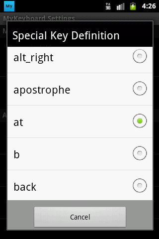 MyKeyboard یک روش ورودی به منظور افزایش عملکرد از صفحه کلید سخت افزاری دستگاه های آندروید است.