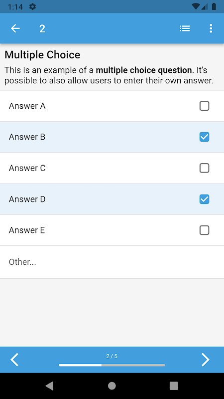 پس از وارد کردن رمز عبور خود را و دانلود نظر سنجی، برنامه کار می کند بدون اتصال به اینترنت. این به این معنی است که پاسخ دهندگان می توانید در این نظرسنجی در هر زمان و هر کجا که می خواهید پر کنید. پاسخ به صورت محلی در برنامه ذخیره می شود و آپلود زمانی که اتصال به اینترنت دوباره وجود دارد.