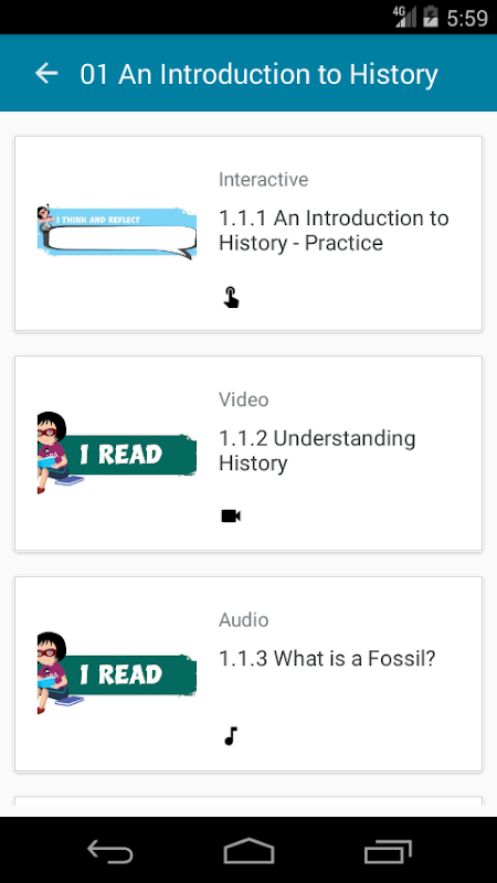 مواد و ارزیابی عمل برای دانش آموزان برنامه MyPedia یادگیری.