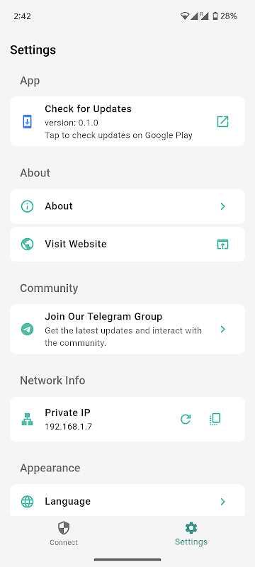 رابط کاربری تمیز و کاربرپسند، اتصال با یک لمس را آسان میکند. از انتخاب سرور دستی و خودکار پشتیبانی میکند.