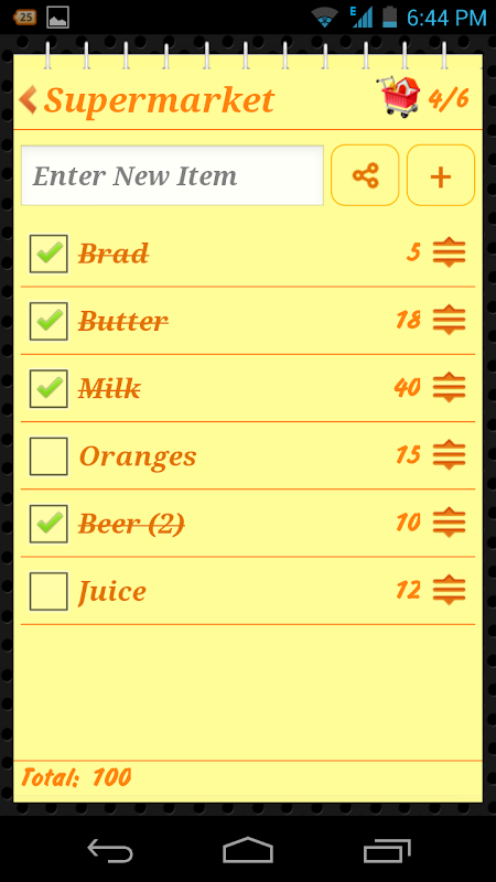 ایجاد لیست، می افزاید: محصولات وجود دارد و همچنین مشخص کمیت و قیمت خود را در صورت نیاز - فقط با چند ضربه آهسته دور.