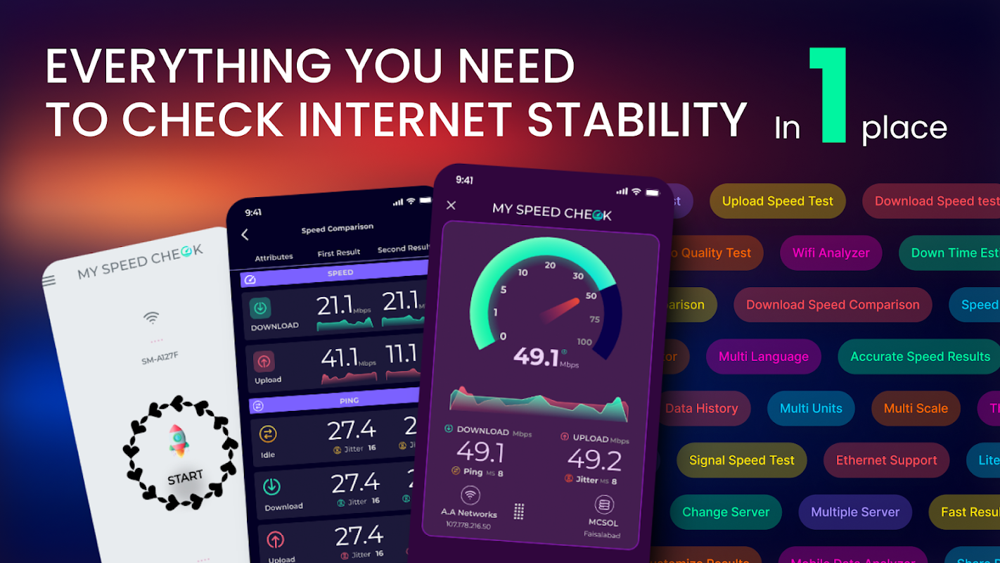 Speed Test – MySpeedCheck: برنامه تست سرعت اینترنت و وایفای