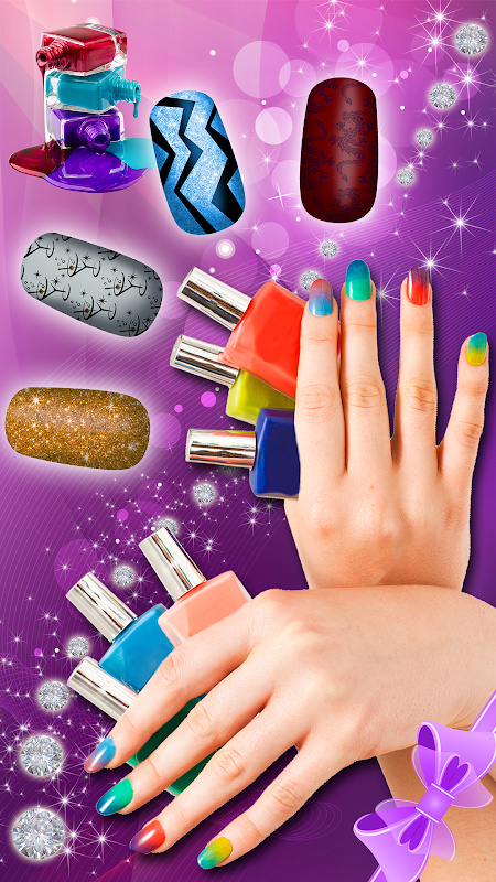 Download free Nail Polish Designs Art Salon, make manicure art and share your unique style with your friends! Post your nail art images to Facebook, Instagram or Twitter! Save photos to your phone gallery and you may also show your creation to a manicurist so you can transfer your nail decoration ideas to your own nails. Express your creativity! Be inspired! Be trendy!