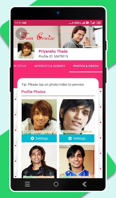 2) مشاهده اطلاعات نمایه کامل یک عضو - اطلاعات شخصی، اطلاعات خانواده، تحصیلات و شغل، آدرس و موقعیت جغرافیایی، طالع بینی / کوندالی، سبک زندگی، علایق و سرگرمی ها، عکس ها و ویدیوها، اولویت شریک و غیره.