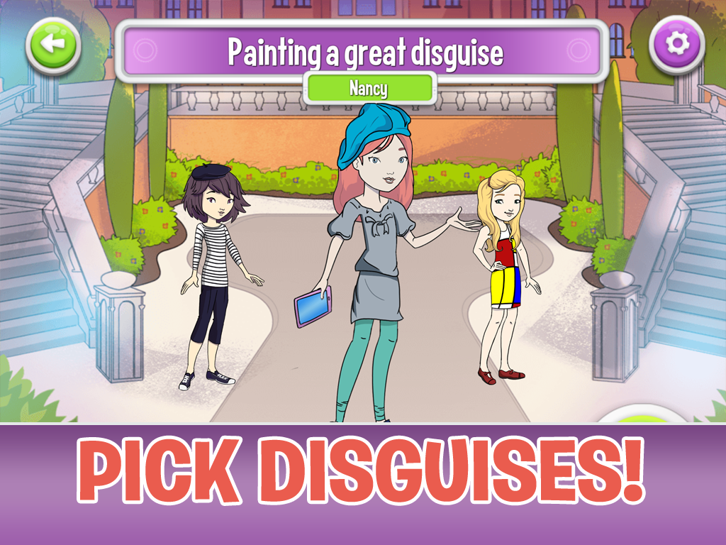 • Select undercover disguises for Nancy, Bess and George!