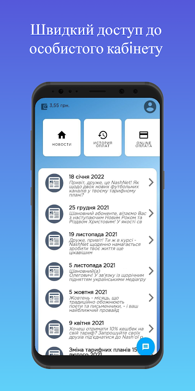 Неофіційний додаток особистого кабінету інтернет провайдеру NashNet.