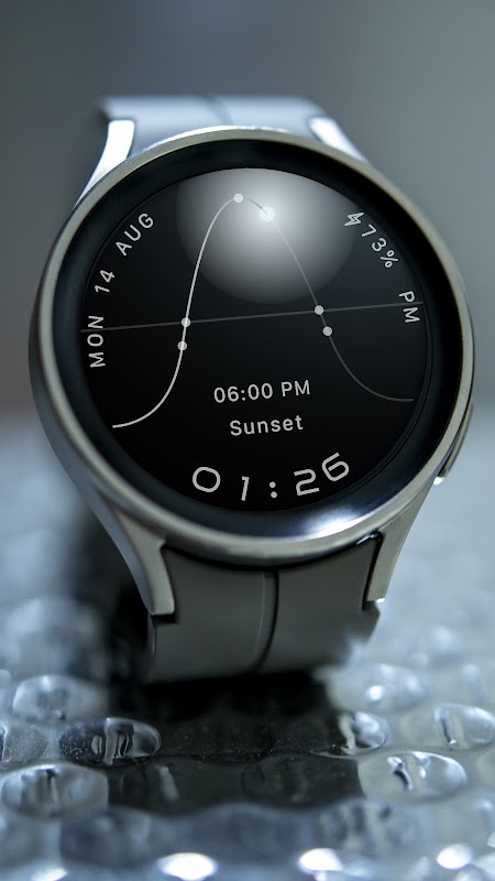 بر اساس مکان و زمان فعلی شما، صفحه ساعت Solar Graph موقعیت خورشید را در آسمان و همچنین روز، تاریخ و زمان فعلی را نمایش می دهد.