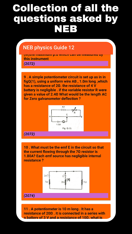 This app contains a collection of the questions that were asked by the NEB in past years in the HSEB (NEB) bord. This app contains questions up to year 2078 (latest) . This app is free to use and mainly made for those students who do not want to spend extraa money to buy questions bank . You can try this app and provide us the suggesestion to improve this app. All the questions mentioned inside this app were asked by NEB . This is a NEB questions Solution app. Please help us improving our service by giving us suggesestion at [email protected]
