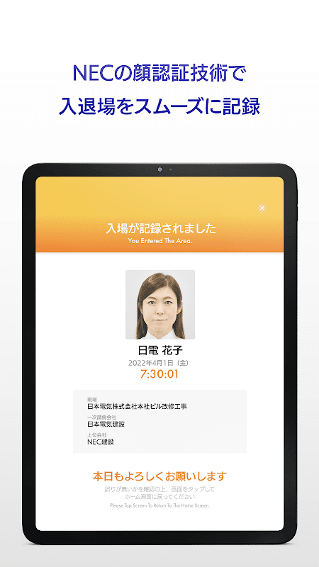 این سرویسی است که با پیوند دادن به سوابق ورود/خروج (سرویس مرتبط با GPS) ارائه شده توسط شرکت NEC، تشخیص چهره را در سایت های ساخت و ساز تسهیل می کند.