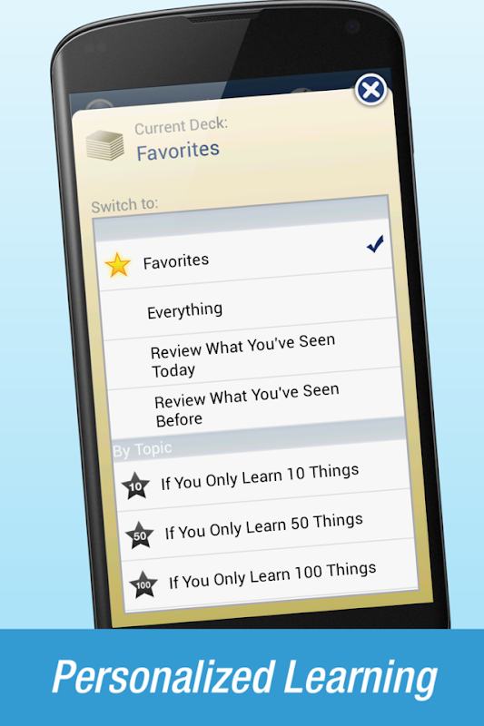 هر کارت می تواند به عنوان یک مورد دلخواه مشخص شده، اجازه می دهد شما را به عرشه سفارشی خود را از کارت به تمرکز بر روی کلمات از روز. فعال کردن حالت را نقد کنید به روکش آنچه شما قبلا در روز تمرین برای تقویت حافظه خود را.