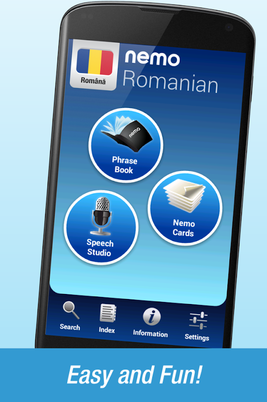 نمو طراحی شده است که برای شروع به شما در صحبت کردن مفید ترین کلمات در رومانیایی بلافاصله و با اطمینان. با میلیون ها نفر از دریافت ها از در سراسر جهان، نمو است در حال حاضر برای گوشی های آندروید و قرص در دسترس است.