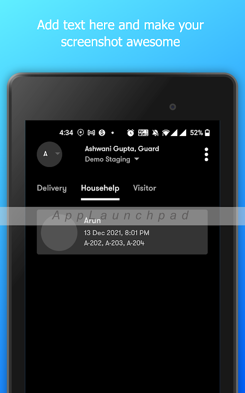 - مهمانان مورد انتظار - مهمانانی که از قبل توسط ساکنان در برنامه ساکن خود وارد شده اند به طور خودکار در این برنامه منعکس می شوند و ورود به سیستم برای پرسنل امنیتی ساده و کارآمد می شود و برای مهمانان و ساکنان لذت بخش می شود.
