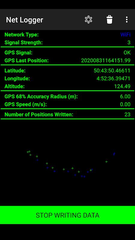 Net Logger موقعیت GPS و نوع اتصال شبکه و قدرت سیگنال را نشان می دهد و ذخیره می کند.