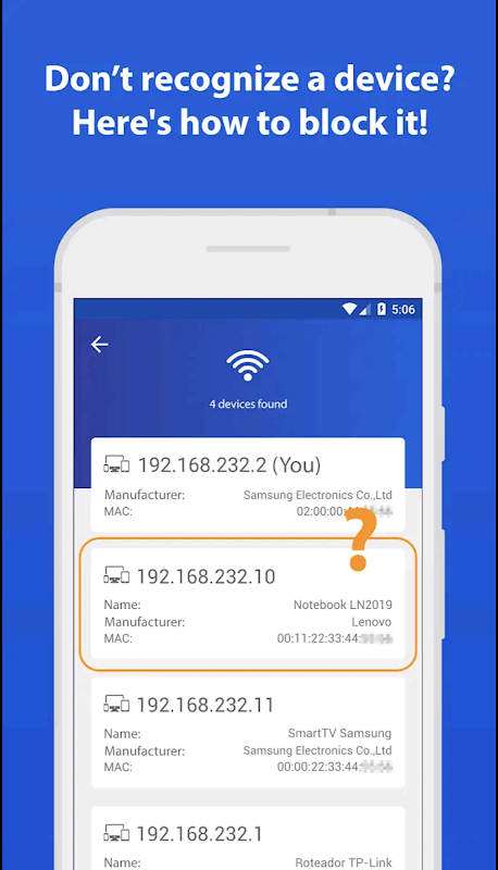 With this app you can see all the devices that are connected to your WiFi network and learn how to block them.