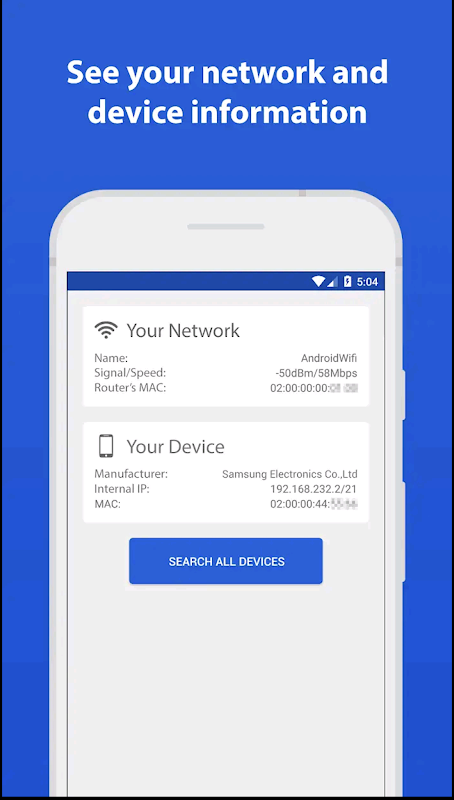 The app also provides information about your network such as speed, Wi-Fi signal strength, router name and MAC.