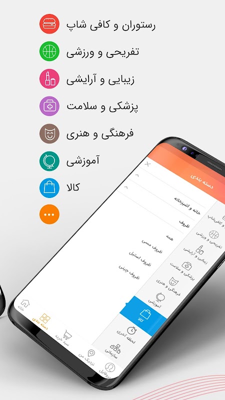 • جستجو بر اساس دستهبندیهای دلخواه مانند ورزشی، آرایشی، رستوران، تفریحی و ...