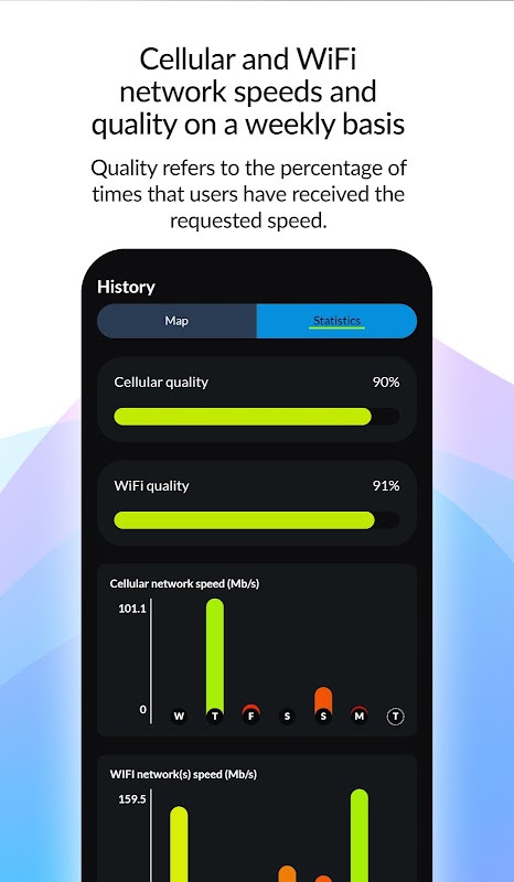 • می توانید عملکرد شبکه های تلفن همراه و Wi-Fi خود را به صورت هفتگی با میانگین سرعت دانلود در روز مشاهده کنید.