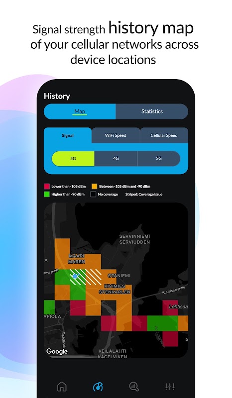 • کیفیت شبکه خود را فقط در چند ثانیه در هر زمان و هر کجا که می خواهید آزمایش کنید. شما گزارشی با جزئیات اتصال شبکه خود مانند سرعت دانلود/آپلود، قدرت سیگنال، فرکانس استفاده شده و تأخیر دریافت می کنید.