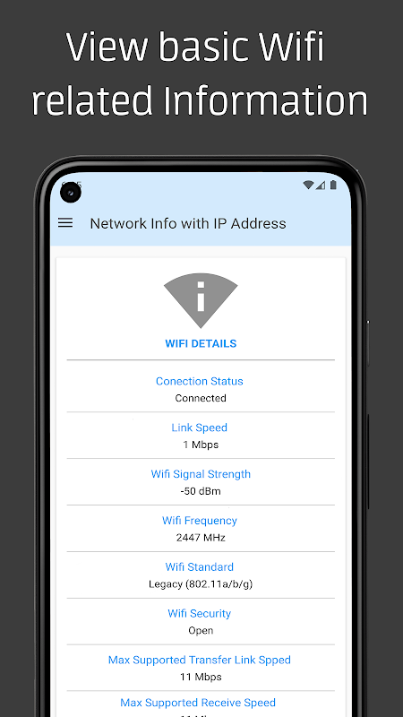 ▪️ اطلاعات مختلف وای فای و شبکه را نشان می دهد.