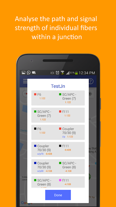 • نرم افزار نقشه شبکه می توانید یک مکان مسئله زمانی که یک ورودی OTDR با توجه حتی حلقه کابل در مسیر داده شده است پروژه می باشد. زمانی که دستگاه تلفن همراه وارد دایره مسئله، یک زنگ زنگ خواهد شد کمک به تکنسین به پین نقطه گسل است.