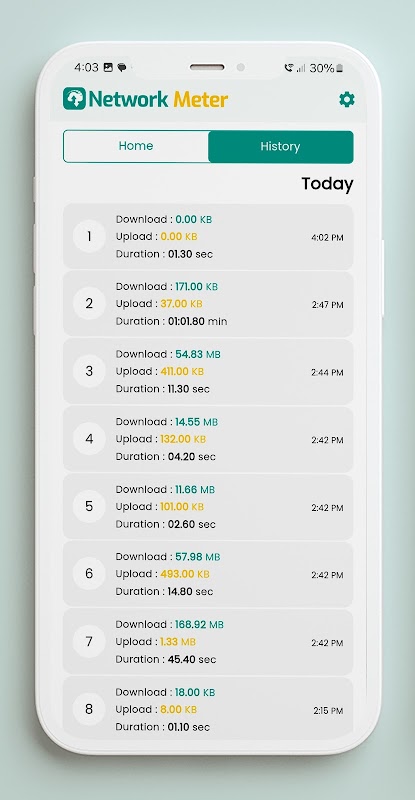بر سرعت آپلود/دانلود در زمان واقعی نظارت کنید و میزان استفاده از دادههای هر برنامه را پیگیری کنید.
