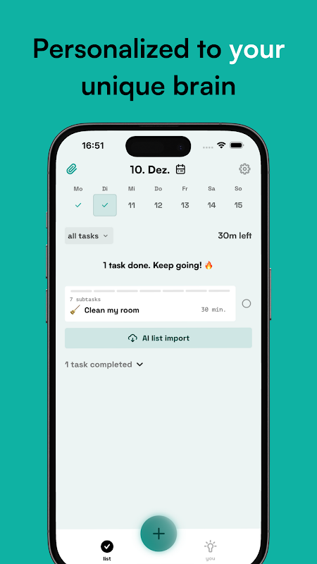 چه مبتلا به ADHD، چه اوتیسم یا یک بیماری واگرای عصبی دیگر باشید، این برنامهریزی است که با نیازهای شما سازگار میشود. همانطور که شما پیشرفت می کنید، یک تجربه برنامه ریز هوش مصنوعی انعطاف پذیر را ارائه می دهد. و این تازه آغاز کار است - به زودی، neurolist به شما امکان می دهد زمینه های بیشتری را به وظایف خود اضافه کنید و بینش های بهره وری پیشرفته ای را که برای ADHD و کاربران عصبی واگرا شده است ارائه دهید.