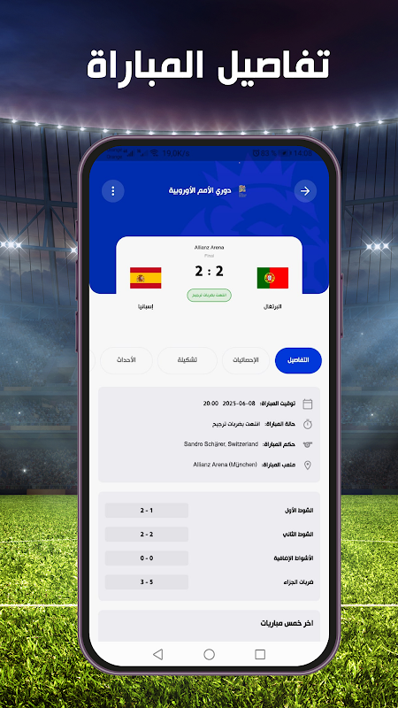 دیگر هیچ مسابقه ای را از دست نده! زمانها و برنامههای بازی (امروز، دیروز و فردا) را دریافت کنید و نتایج زنده را با اعلانهای فوری برای گلها و رویدادهای مهم دنبال کنید.