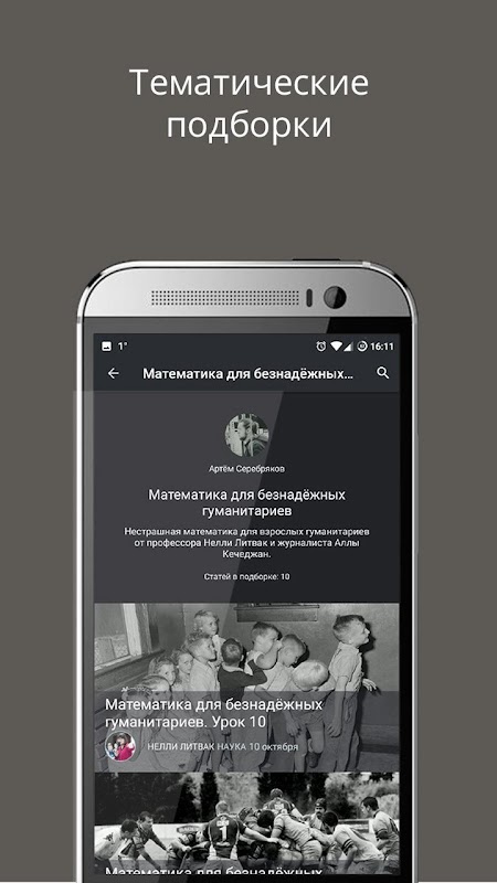 - Подборки. Материалы по определённой теме, собранные редакцией и экспертами — от советов по тренировке памяти до книжных подборок.