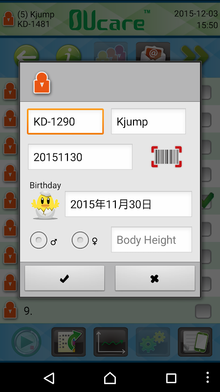 NFC OUcareTM is an intelligent and powerful application software which works on Android based mobile devices helping you manage body temperature or bath water temperature daily at home. Having supported digital thermometers connected to mobile devices by NFC, you can assign the thermometers to certain user then read back temperatures in an easy-to-read way. You can track measurement records, view the graphic trend on mobile devices, or even share the records to your doctor or family by E-mail and SMS.