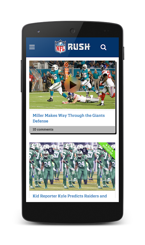 The Official NFL RUSH app brings the National Football League directly to you every day! Connect with your favorite NFL teams and players via: