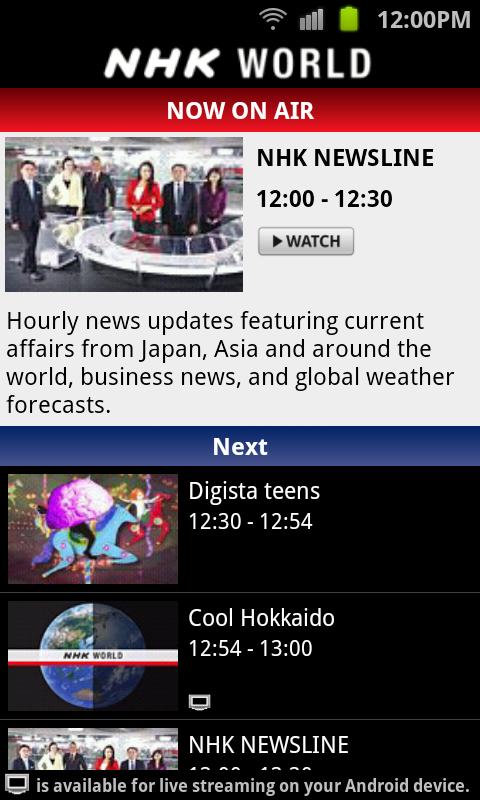 Watch NHK WORLD TV Live on your Android device.