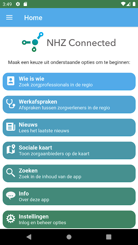 هر شرکت کننده حساب شخصی خود را در برنامه NHZ Connected دارد و می تواند آن را با اطلاعات خاصی مانند شماره تلفن مستقیم ، ساعات کار ، تعطیلات و / یا تخصص اضافه کند.