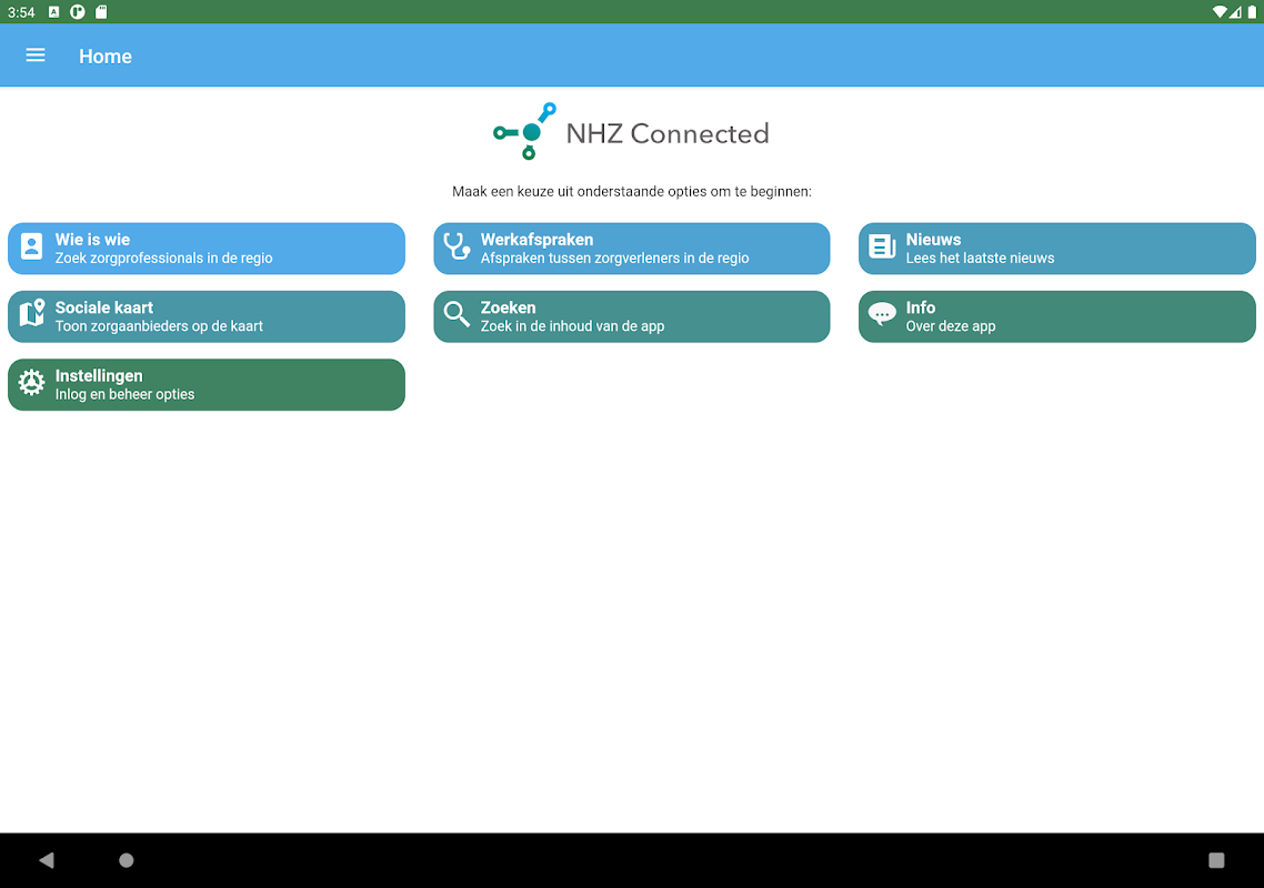 برنامه اتصال شمال هلند جنوبی (NHZ) از ابتکار عمل مرکز هماهنگی پزشکی (MCC) هارلم en Meer سرچشمه گرفته است. ایده این برنامه این است که ارائه دهندگان خدمات مراقبت در منطقه (خط 1 و 2) می توانند برای ارتقا. همکاری متقابل ، راحت تر یکدیگر را پیدا کنند و به آنها برسند. برنامه و وب سایت همراه (www.nhz-connected.nl) بستر اطلاعاتی منطقه ای برای این امر هستند.