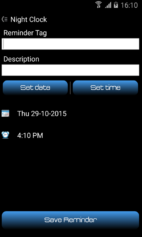 Night Clock displays time in big font with blue color. With this night clock you can see the time at night when is light turned off.