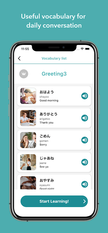 - واژگان با تصاویر و تصاویر زیبا و خوانا و با تلفظ دقیق توسط زبان مادری ژاپنی ارائه می شود.