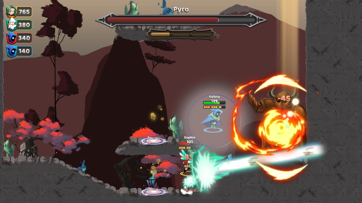 Every character has a unique 'dash' ability: double jump, fly, bounce, and many more! In addition to dash, characters have 2 active and 1 passive ability making gameplay fully unique from one to another. All of this allows being nimble and powerful in platformer action.