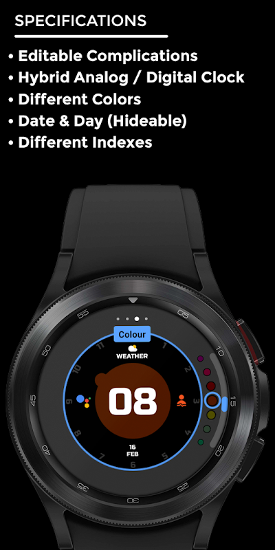 ساعت ترکیبی، تاریخ و روز، رنگ های مختلف، عوارض قابل ویرایش