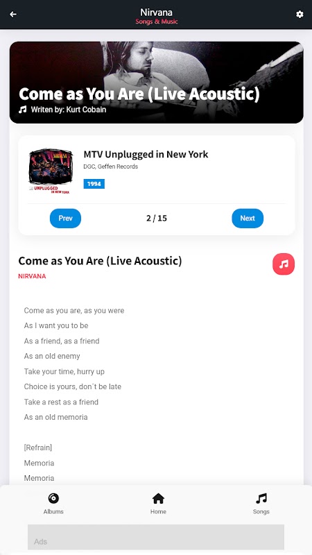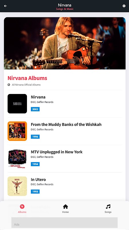 برنامه قطعی نیروانا: آلبوم ها، آهنگ ها و ترانه ها