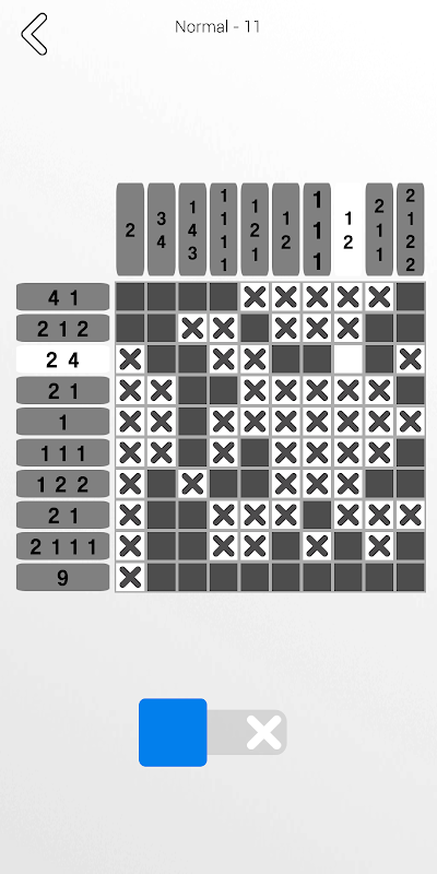 - If you have figured out that the square shouldn't be colored, mark it with an X.