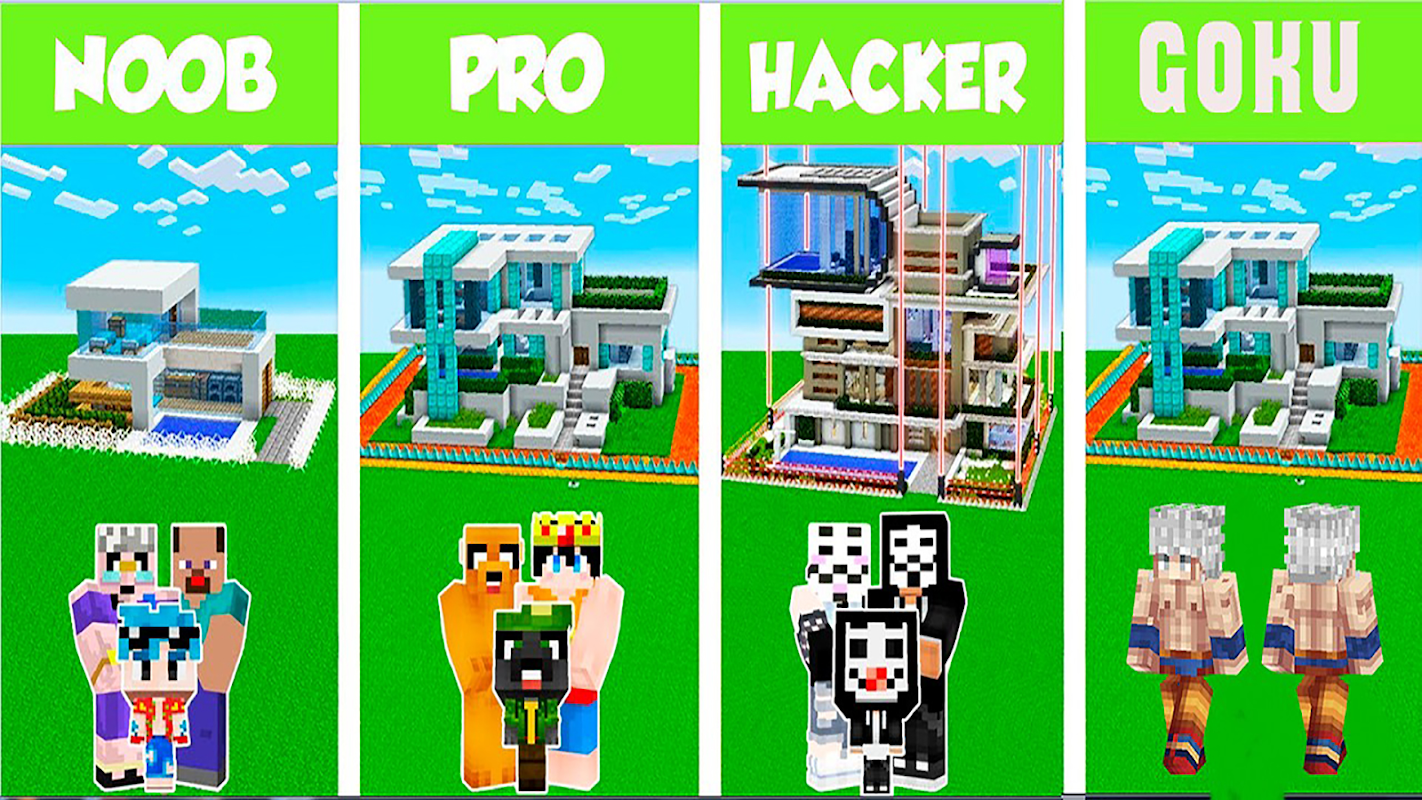 Noob vs Pro vs Hacker vs Goku برای MCPE. این حالت بازی را برای موبایل بارگیری کنید.