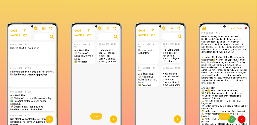 With notes reminder you can write on mobile in notepad and note color notepad incredibly fast and easily. It gives you a fast and simple notepad editing experience while you write notes, notes reminder or shopping list and to-do lists.