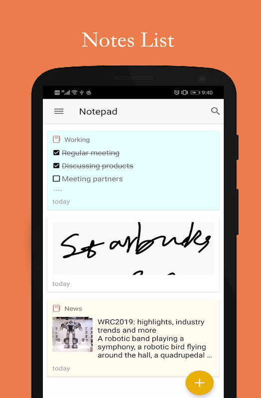 In this notepad with a friendly interface and many features, you can create note whenever possible, and you can manage the notes wherever.