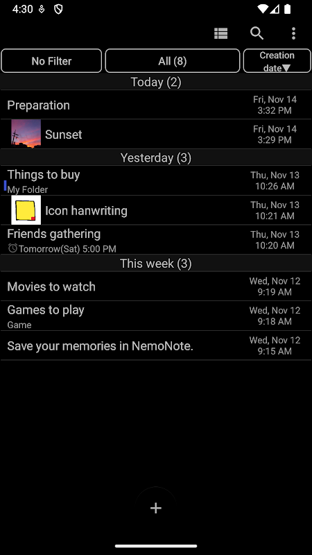 - فهرست یادداشت ها را بر اساس تاریخ ایجاد، تاریخ اصلاح، تاریخ خواندن مرتب کنید