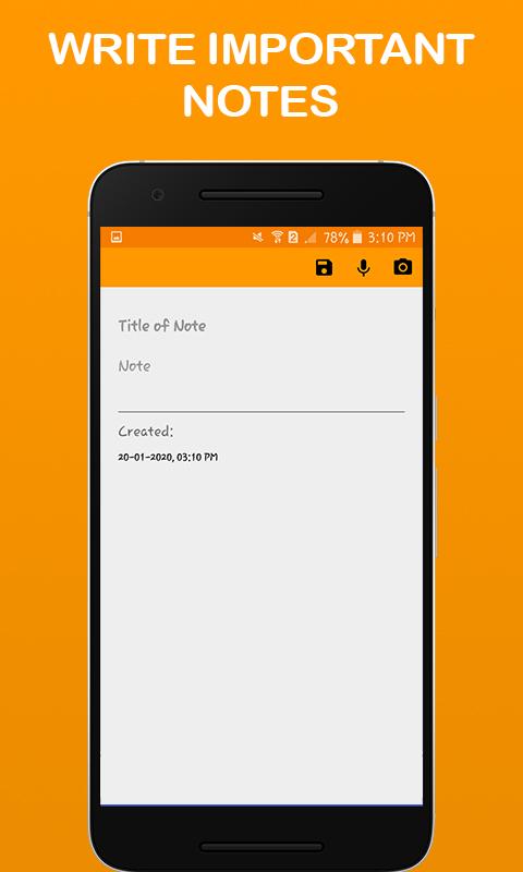 Easily write your notes through note app which provides quick and easy note creation and checklists. Take a note from camera or create a voice note and enable the security for all your important notes with notepad lock feature. Restrict your personal notes from other, apply the note lock on the notepad notes app to make them safe. Quickly save whats in your mind, use the note taking app to save text notes, photo or a voice notes using speech to text.