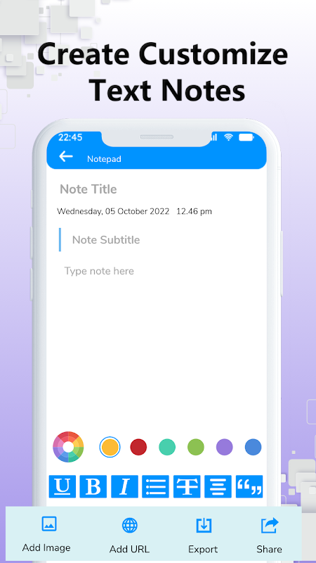 برنامه Notepad - Sticky Notes یک برنامه یادداشتسازی ساده، آسان و رایگان است که به یادداشتبرداری، دفترچه یادداشتها و لیست وظایف کمک میکند. Note Pad - Notepad App دارای رابط کاربری شگفتانگیزی است که به کاربر در استفاده از برنامه کمک میکند. علاوه بر این، ویژگیهای قالببندی مختلفی در Sticky Notes موجود است - برنامه Notes Making مانند پررنگ، مورب، نقل قول، لینک، خط خطی، گلوله و فرمت واضح. می توانید هر رنگی را روی یادداشت ها اعمال کنید. هیچ محدودیتی برای افزودن متن با استفاده از این یادداشت پد یا دفترچه یادداشت سریع - برنامه یادداشت ساده وجود ندارد، بنابراین یک یادداشت چسبنده یا لیست کارهایی که نیاز دارید با برنامه Notepad ساده ایجاد کنید. علاوه بر این، می توانید تصاویر را در یادداشت ها قرار دهید و آنها را به عنوان تصویر یا در قالب متن صادر کنید.