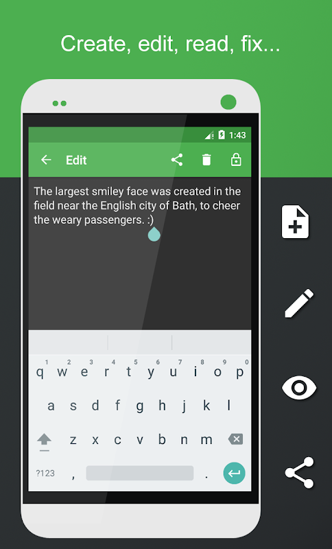 یادداشت سویفت - یک ابزار جدید، سریع و قابل اعتماد برای حفظ سوابق خود را است. یادداشت سویفت یک نوت بوک طراحی شده در سبک مواد طراحی، که دارای یک حفاظت از داده ها قوی و سرعت بالا است. رمزگذاری تمام اطلاعات مهم خود را، تنظیم رمز عبور و نوت بوک یادداشت سویفت قطعا مراقبت از ایمنی خود را. این نوت بوک سریع یک رابط کاربری ساده، به عنوان یک انتخاب از انواع طرح های رنگی که به شما اجازه سفارشی کردن نرم افزار در اختیار آن وجود دارد. با استفاده از نوت بوک یادداشت سریع، شما نمی توانید ترس از دست دادن این همه باید ذخیره شود)