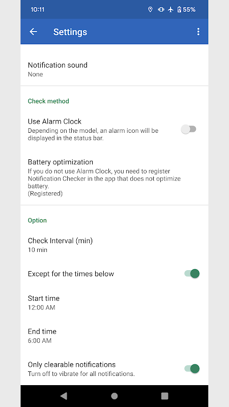اگر از ساعت زنگ دار استفاده نمی کنید، باید در برنامه ای که باتری را بهینه نمی کند، "Notification Checker" را ثبت کنید.